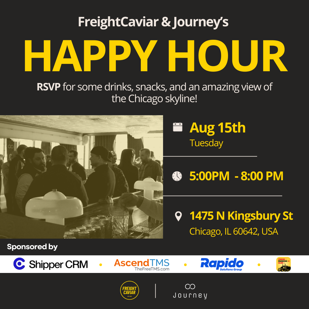 We are hosting a FreightCaviar Happy Hour alongside our friends from Journey on August 15th, 2024, in Chicago, IL. If you would like to attend (it's free), you just need to RSVP using this link. We have limited capacity, so RSVP now if you want to join us.
