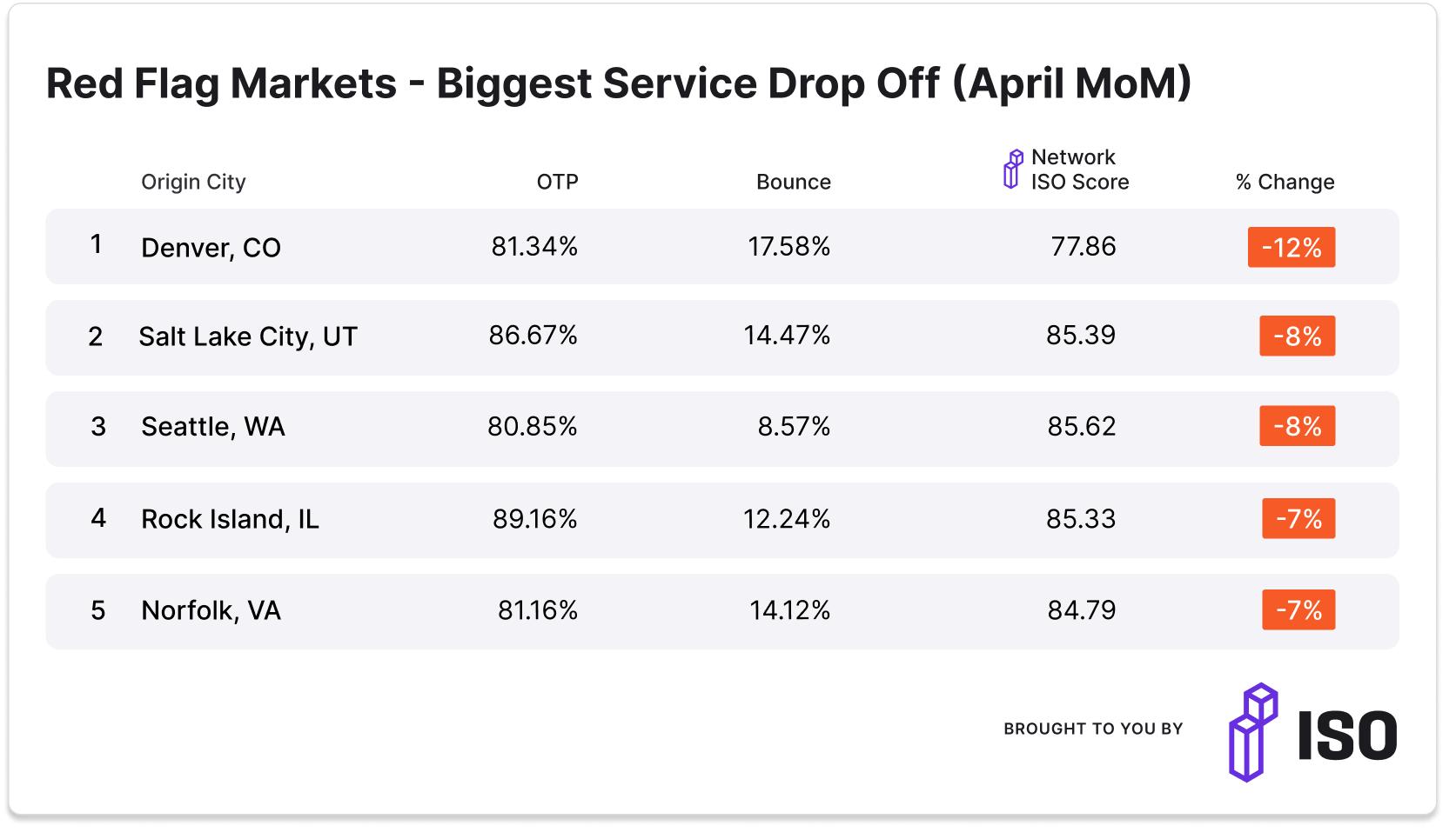 TOGETHER WITH ISO: Watch out! These key markets saw the biggest service drop-offs across the ISO* network over the past month.