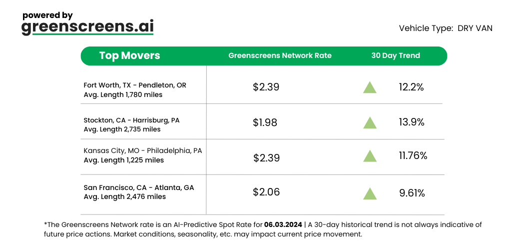 *Greenscreens.ai, forecasts real-time truckload buy prices that are suited to each freight brokerage's purchasing power using AI and machine learning. Its engine takes into account over 130 attributes and data points in each rate forecast.