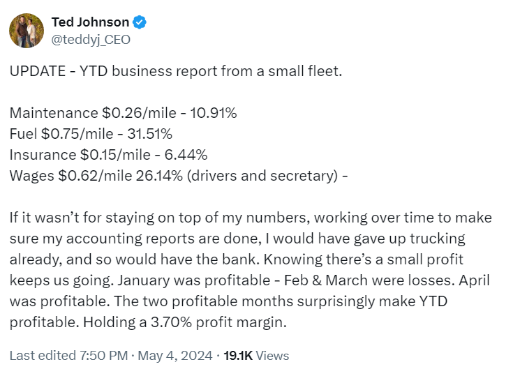 A recent post from the CEO of Elite Commodity Express out of Surprise, Nebraska, gives us a glimpse into how small carriers keep the wheels turning.