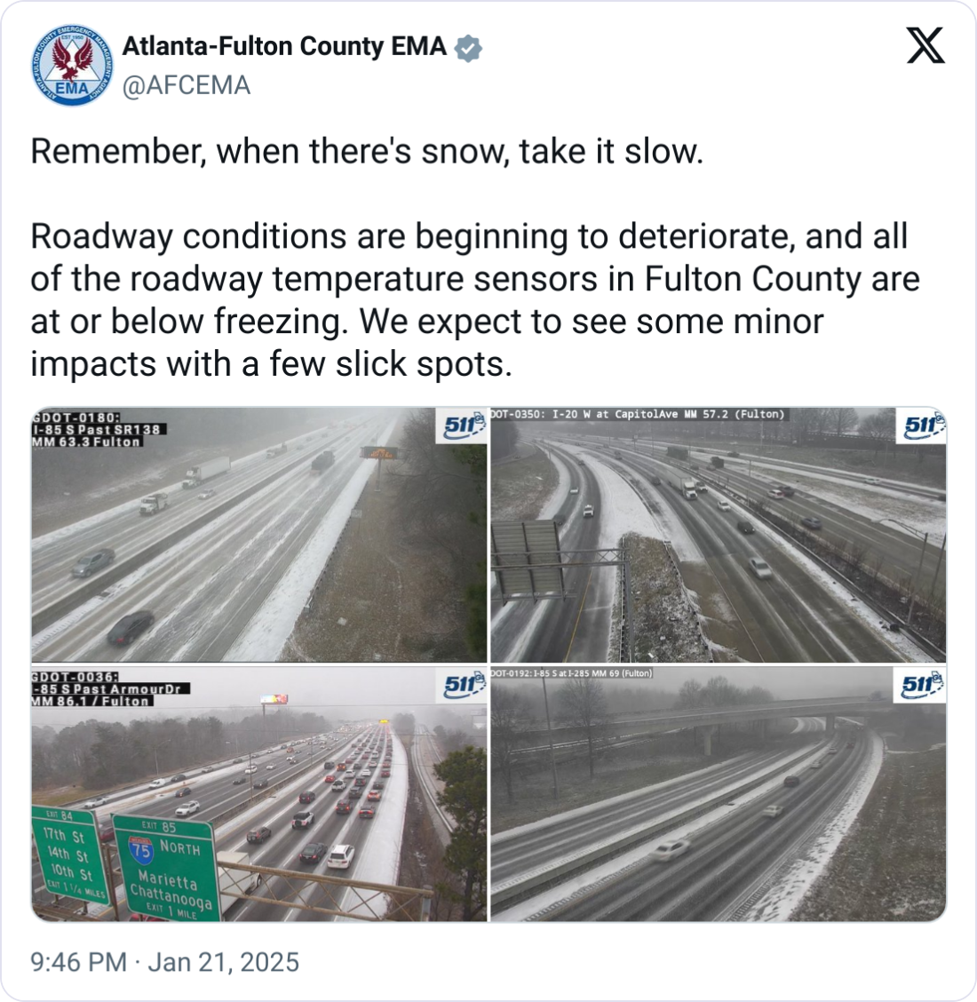 Freight movement along these routes is delayed, with last-mile delivery operations in cities like New Orleans, Savannah, Houston, and Tallahassee severely impacted. Officials urge drivers to avoid travel unless absolutely necessary.