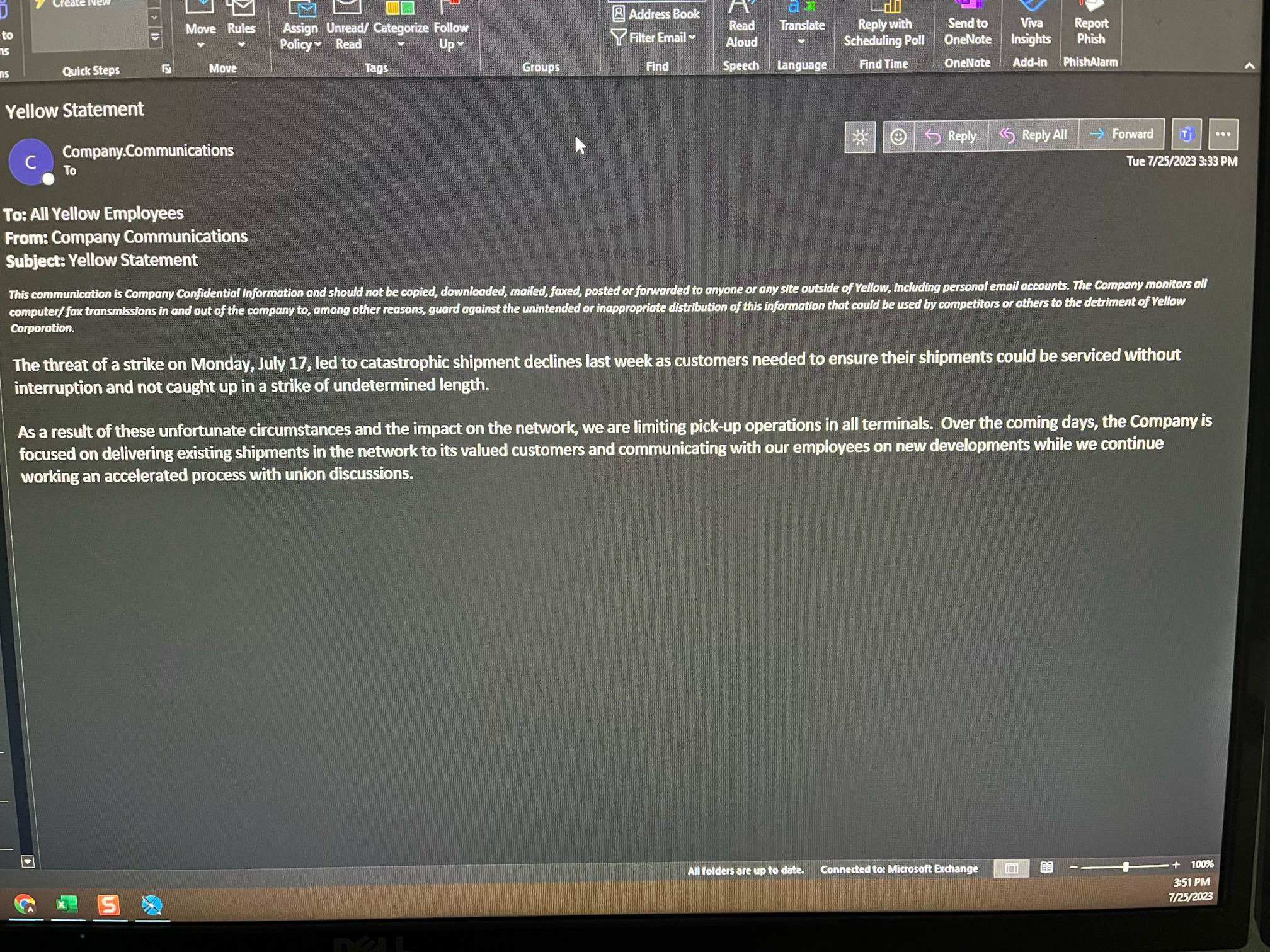 🚚 Yellow Stops Pickups. Yellow has halted pickups in various regions due to strike threats and decreased shipments amid bankruptcy concerns.