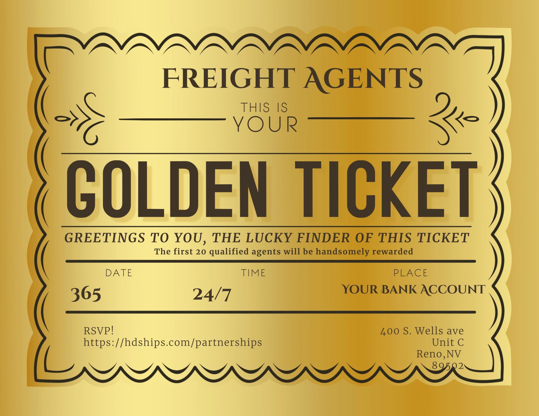 This is your golden ticket! You don't just earn as an independent freight agent partner with our group; you own it. Our one-of-a-kind product is a metaphorical "piece of the pie" in the form of company shares. As our businesses continue to flourish and expand, we collectively bask in the financial successes of our organizations, and so will you. Click here to learn more.