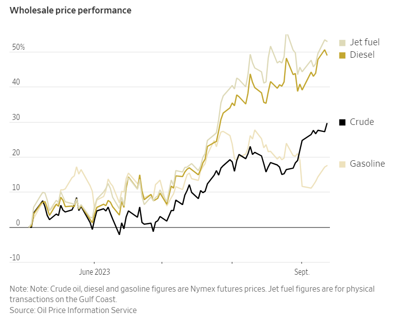 🛢 Fuel Price Surge. Soaring diesel prices, thanks to OPEC's production cuts and rising global fuel demand, put a strain on trucking companies, with diesel up 48 cents per gallon since July.