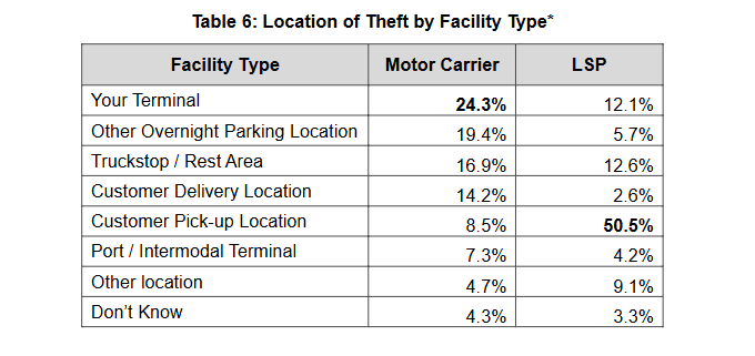 But for LSPs, the real danger is at the dock: Half of all thefts happen at customer pickup locations.