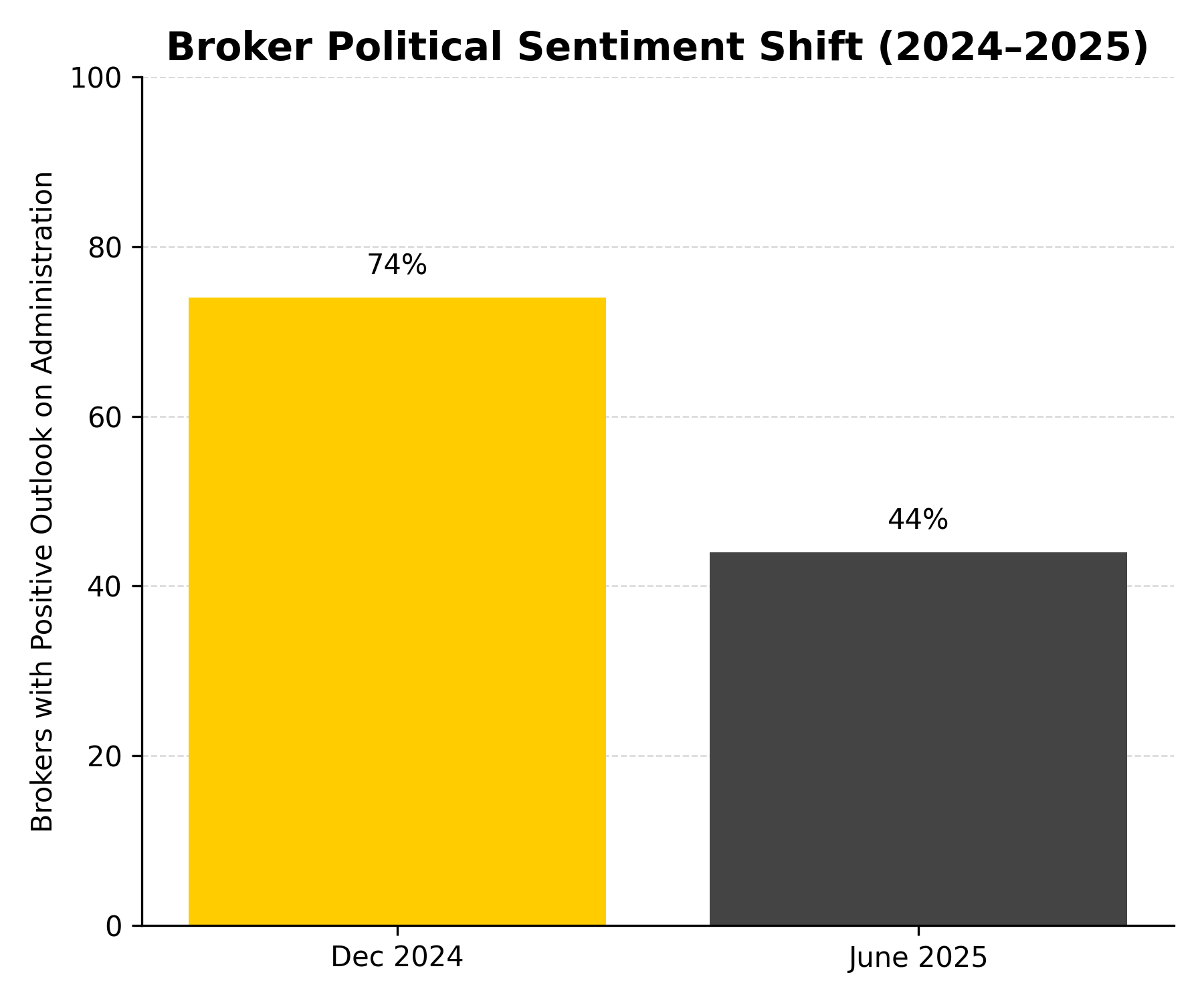 Back in December, 74% of brokers believed the new administration would be good for trucking; by June, that confidence had dropped to just 44%.