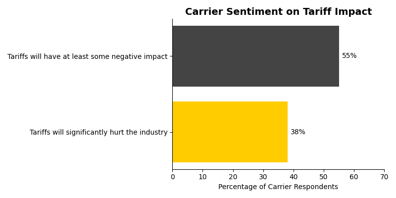 Carrier sentiment on political and economic factors has shifted sharply since Q1. 38% now believe tariffs will significantly hurt the industry, up from 30% last quarter.