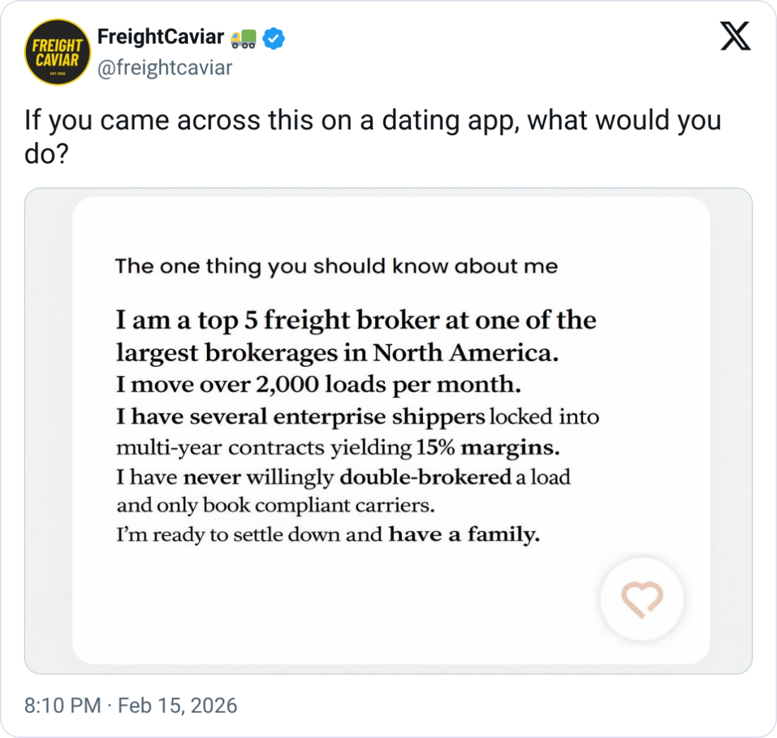 💸 Brokers Bleeding Margins. Craig Fuller writes that many brokers are operating at or below breakeven as contract rates lag costs and pricing power remains weak.