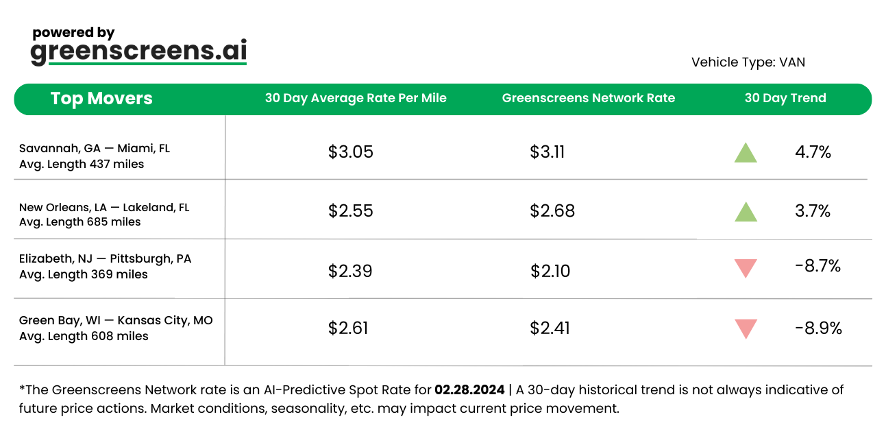 *Greenscreens.ai, forecasts real-time truckload buy prices that are suited to each freight brokerage's purchasing power using AI and machine learning. Its engine takes into account over 130 attributes and data points in each rate forecast.