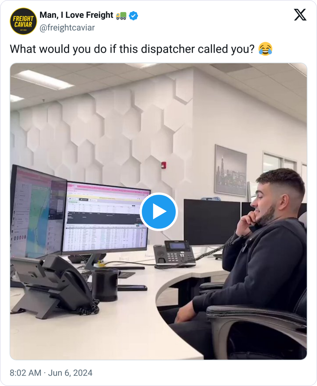 😂 Funny Video of Dispatcher Calling Broker. EO Solutions Inc. out of Elgin, IL, released a humorous video of one of its dispatchers trying to sell a broker on their truck.