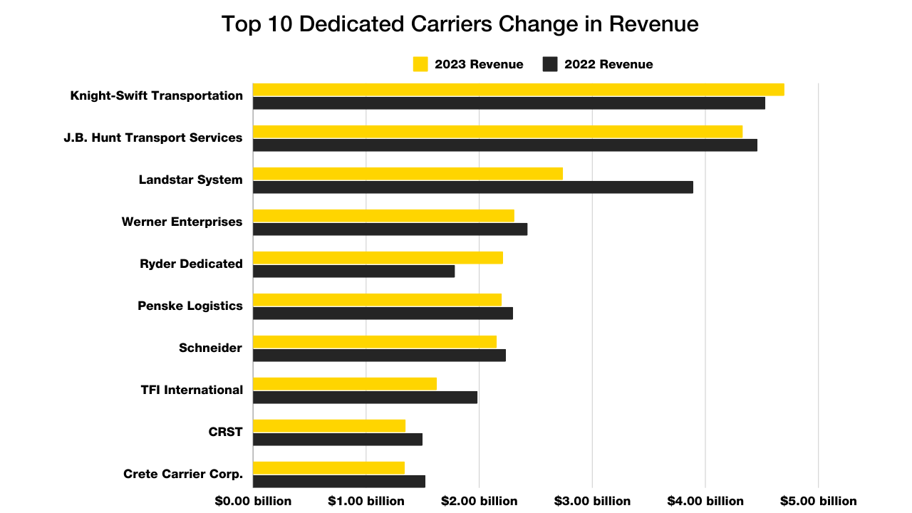 Here's the Top 10 Dedicated Carriers list and their change in revenue from 2022 to 2023.