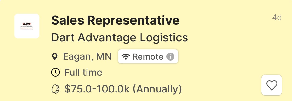Dart Advantage of Eagan, MN is looking for a full-time sales rep. Check out this and more opportunities here.