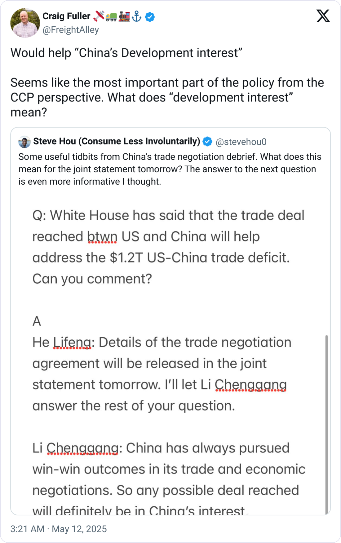 “Any possible deal reached will definitely be in China’s interest, specifically China’s development interest.”