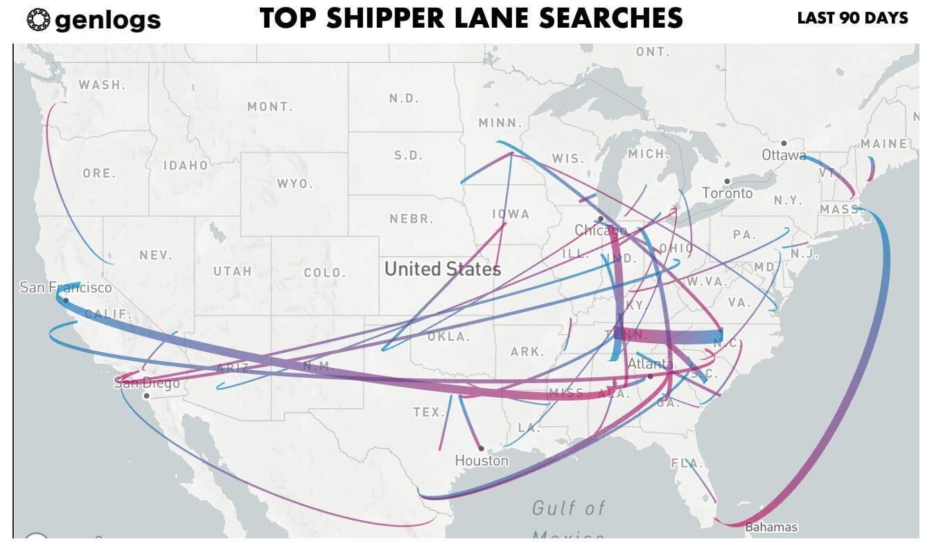 🔍 GenLogs Search Data. GenLogs users have performed over 500,000 unique searches across carriers and shippers, drawing on its database of 500,000 shippers and receivers for lane-level intelligence on supply chains. Take a look at the post by CEO Ryan Joyce to view the top 10 carrier lanes and other interesting search data.