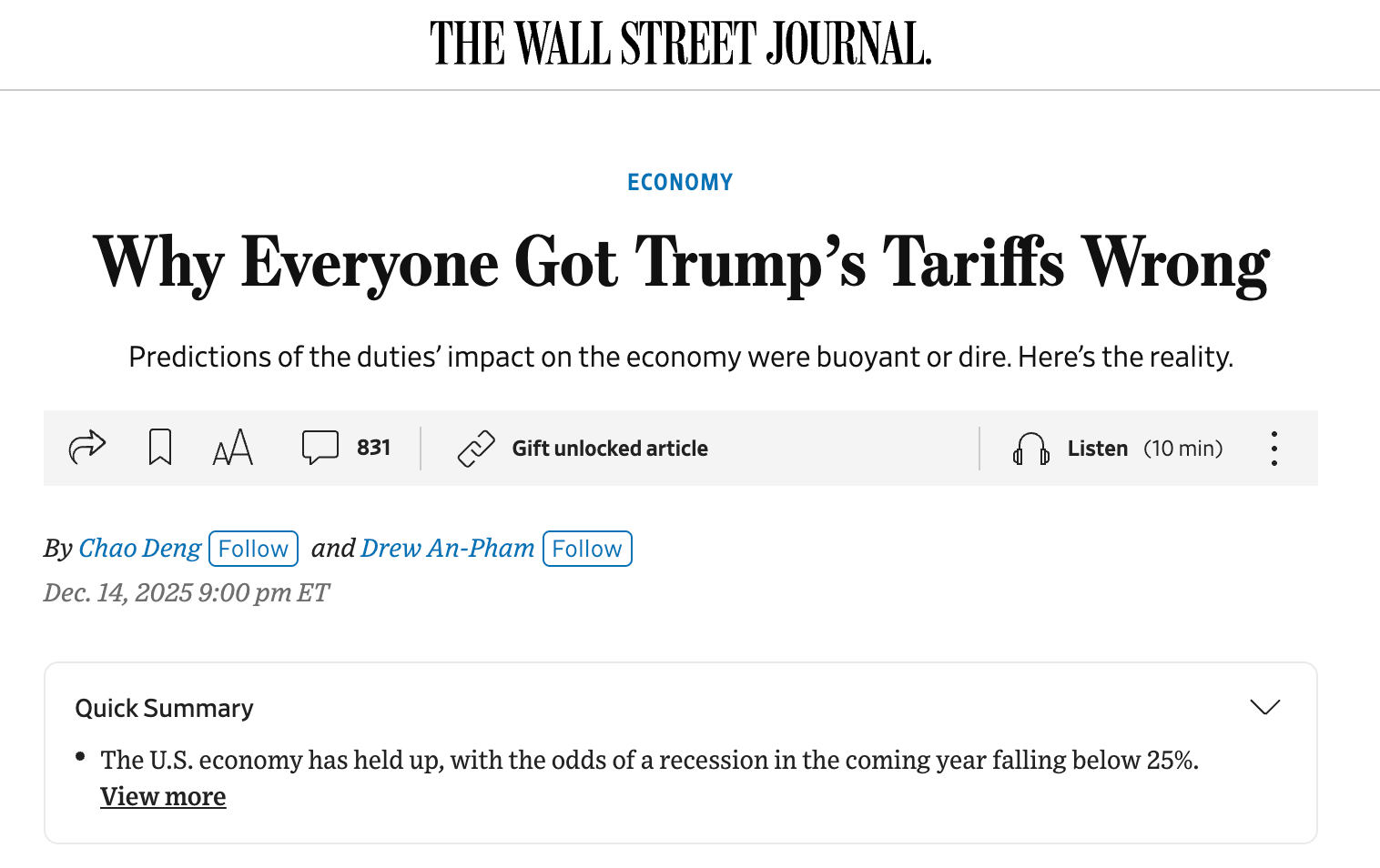 📊 Tariff Reality Check. Early predictions around Trump’s April tariffs swung between economic boom and looming recession. The reality landed somewhere in between with trade flows adjusting, prices shifting unevenly, and neither the optimists nor the doomsayers fully proven right.