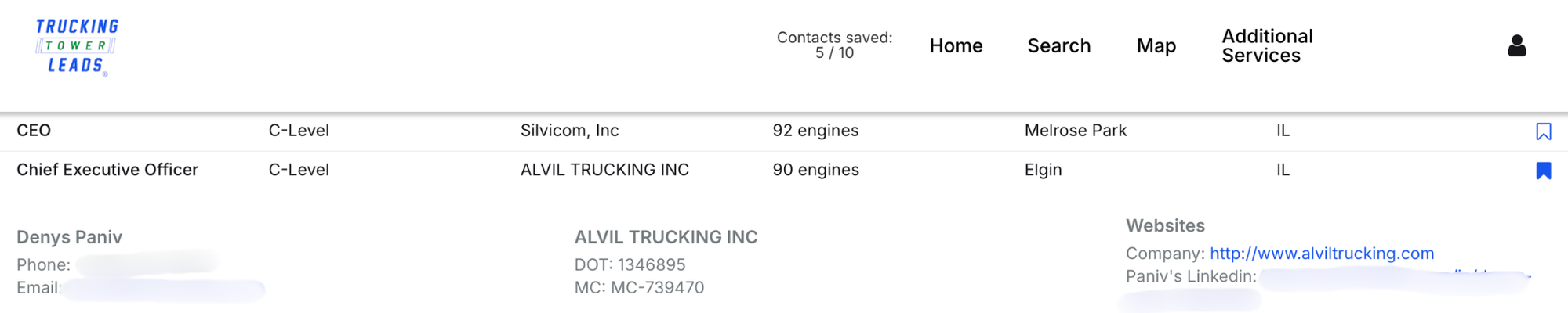 We created a free account and spotted our friend Denys Paniv, CEO of Alvil Trucking, on the list.