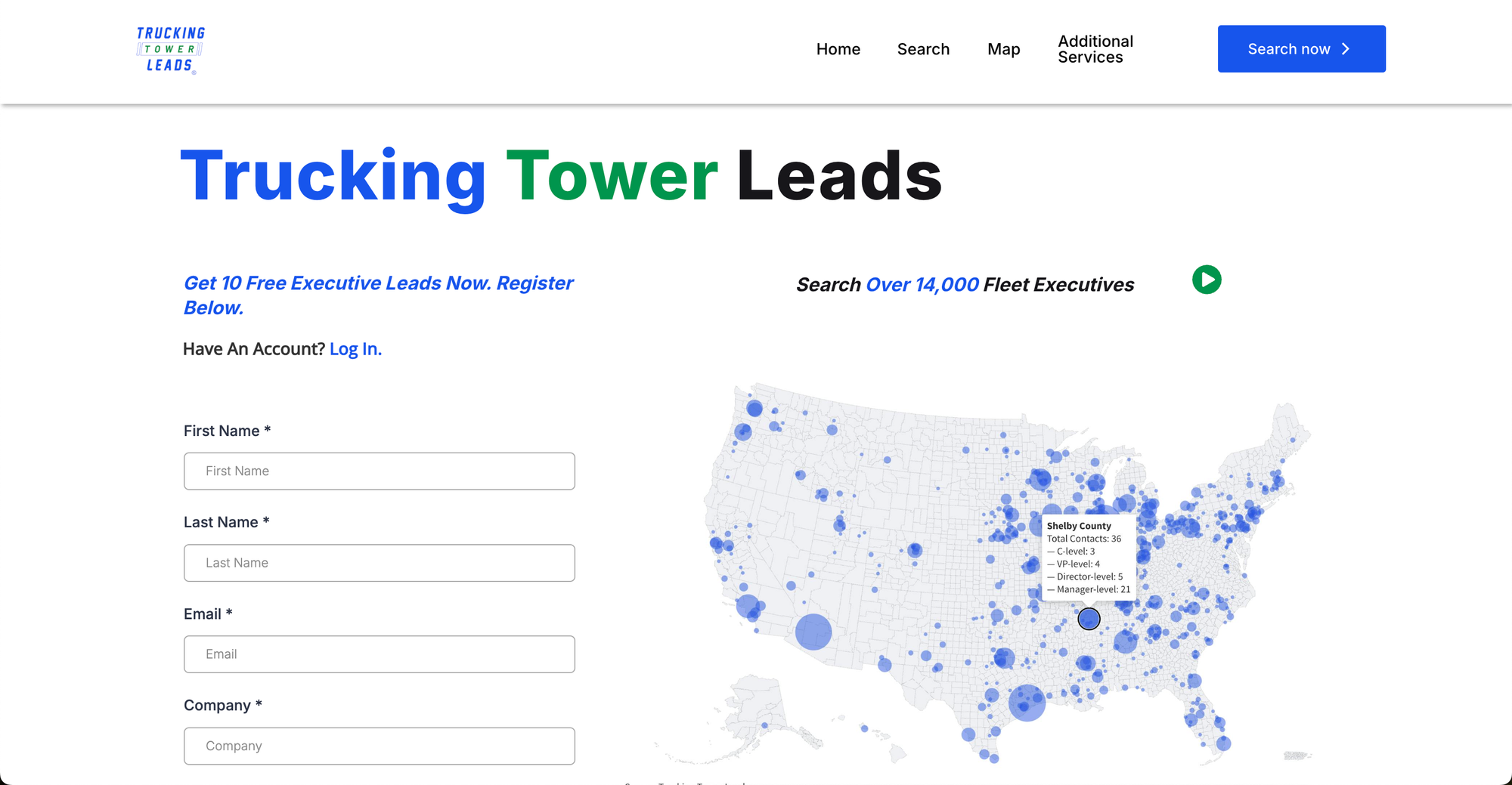 If you’ve used our Shipper CRM product, you’ll get the concept. But instead of shipper data, Trucking Tower Leads zeroes in on fleet operators and their executive teams.