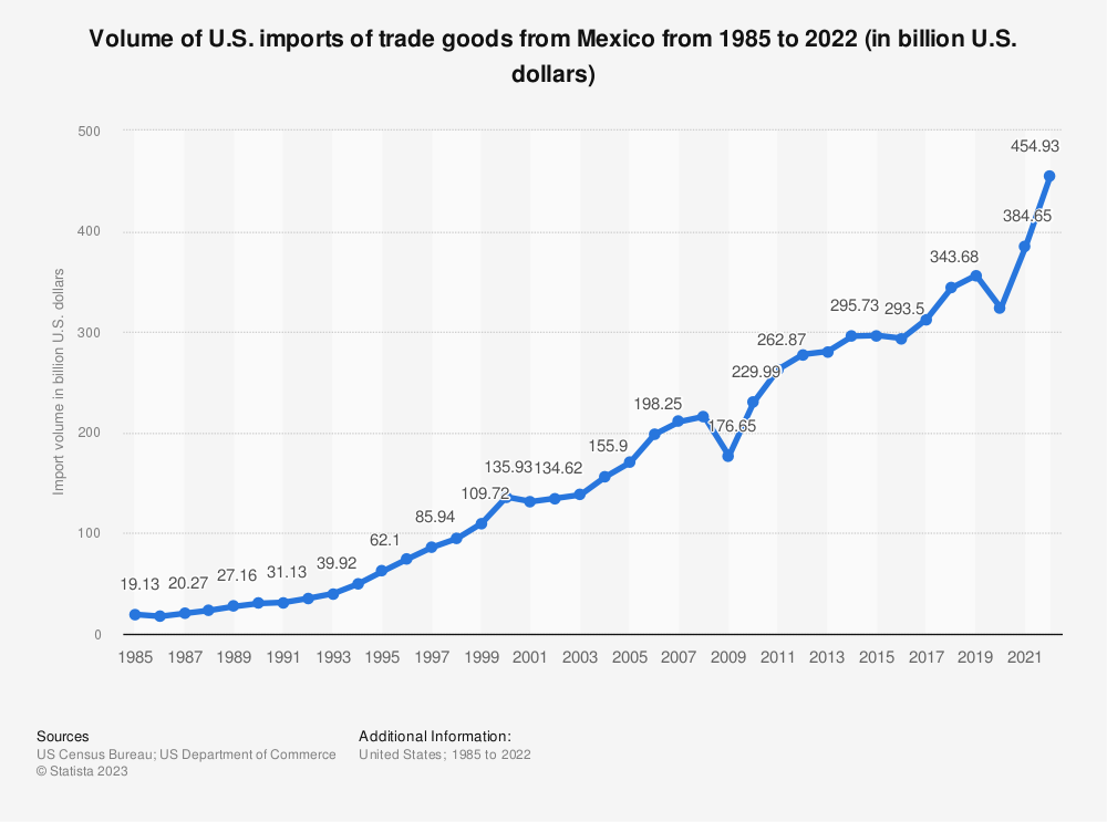 Mexico's Rising Role. Mexico's free-trade agreement with the U.S. and Canada, coupled with a trend towards shorter supply chains post-pandemic, has propelled it to match China's share of U.S. imports as of June. Now, when considering both imports and exports, Mexico stands as the U.S.ās top trading partner.