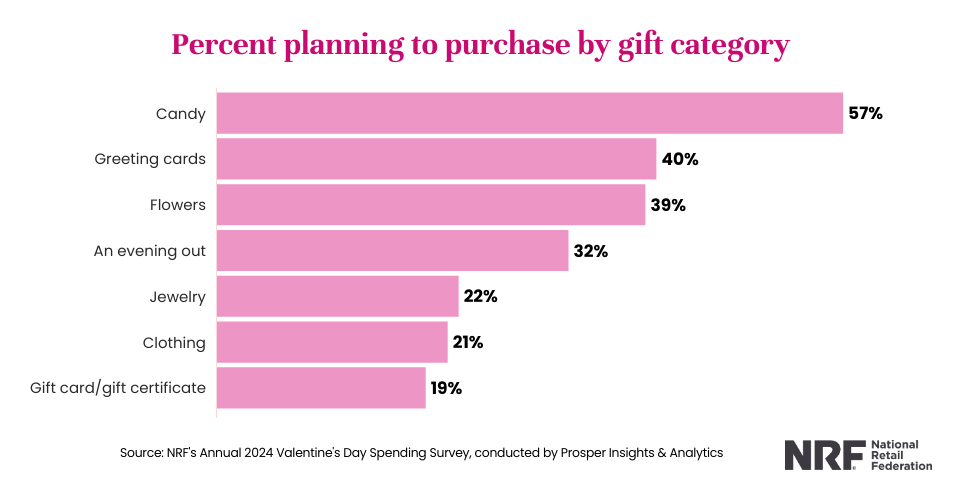 Gift-givers are playing the classics this year, with preferences showing a sweet spot for the usual candy, greeting cards, and flowers.