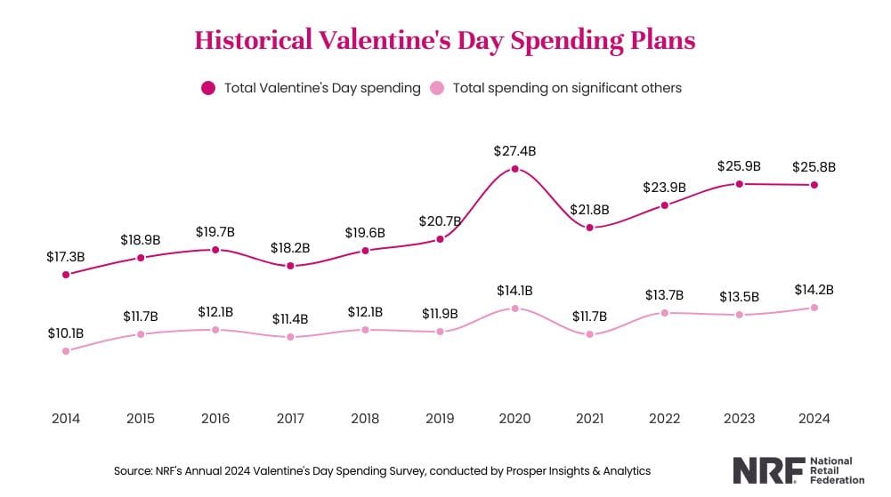 According to last month's survey from the National Retail Federation (NRF) and Prosper Insights & Analytics, Valentine's Day Spending is set to break records this year – with $14.2 billion expected to be spent on significant others.