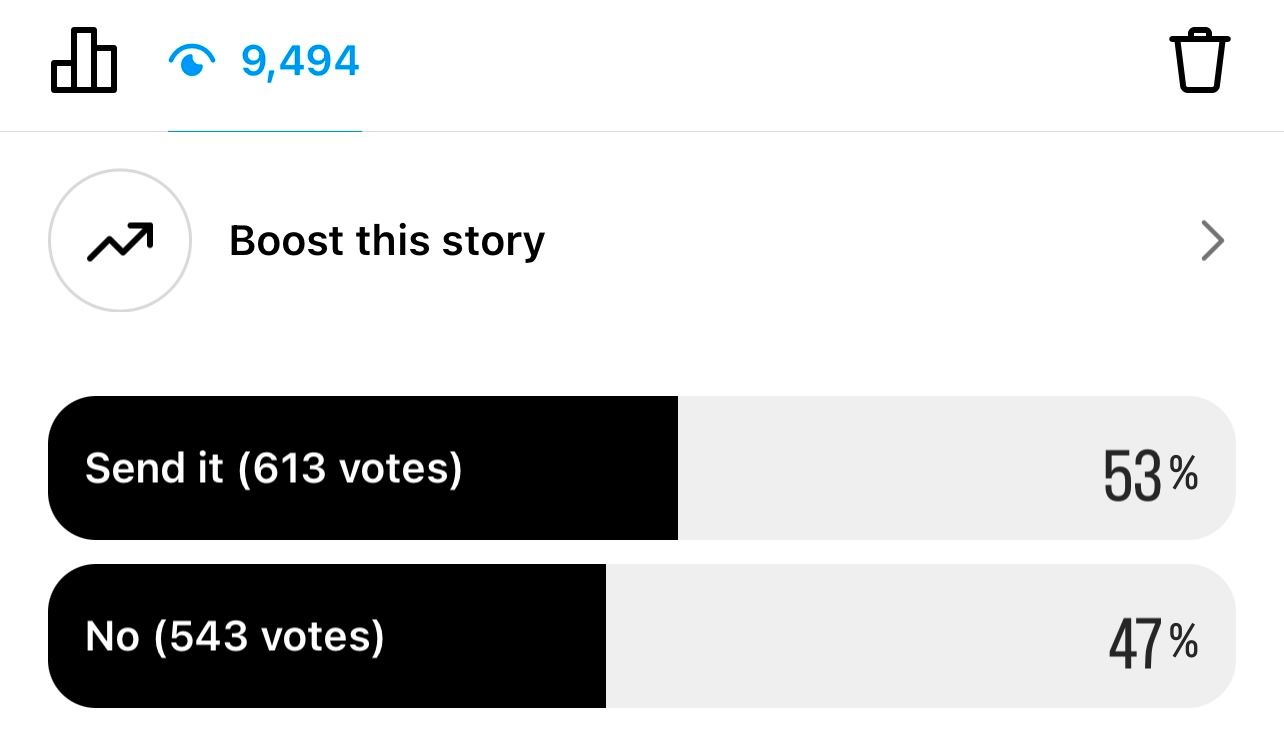 "Send it!" - 613 (53%) were ready to roll with the chicks.