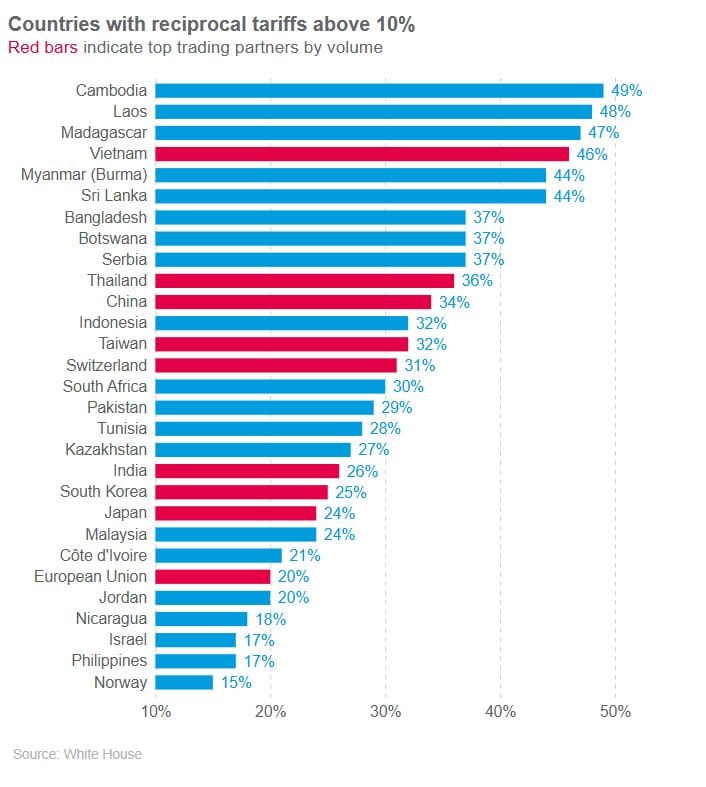 Here are the newly issued tariffs by country: