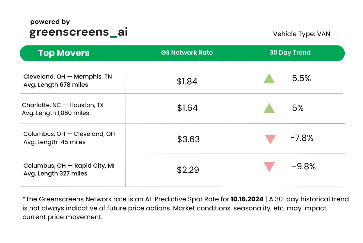 *Greenscreens.ai, forecasts real-time truckload buy prices that are suited to each freight brokerage's purchasing power using AI and machine learning. Its engine takes into account over 130 attributes and data points in each rate forecast.