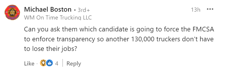 His past recognition of truckers as essential workers suggests ongoing regulatory support for drivers.