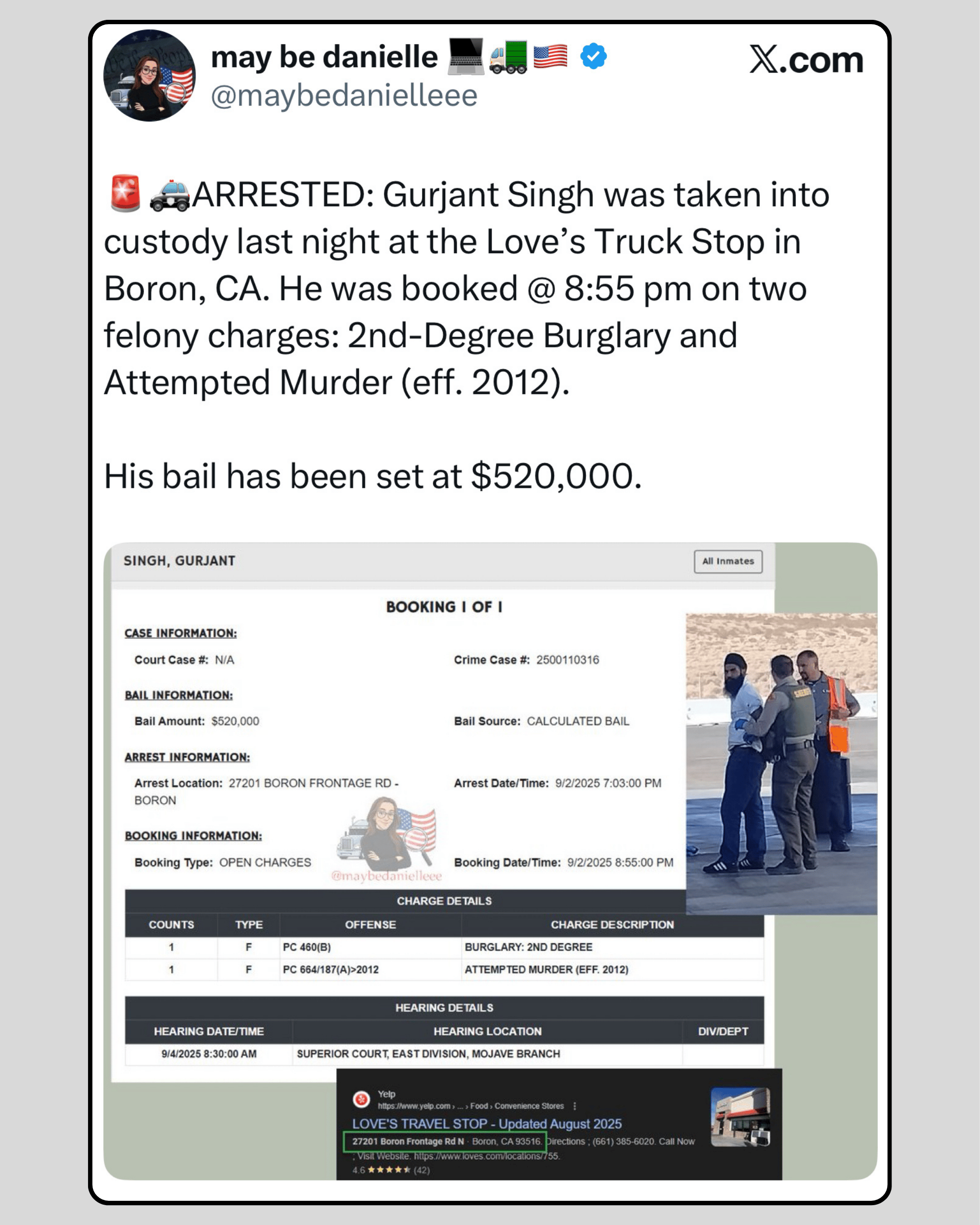 Truck driver Gurjant Singh was arrested after allegedly shooting his co-driver at the Love’s Truck Stop.