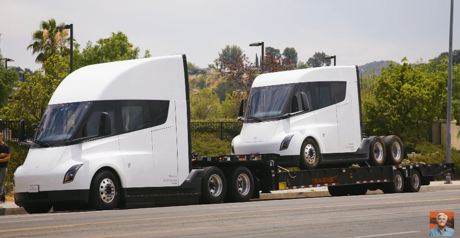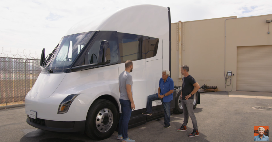 In a recent episode of Jay Leno's Garage, Tesla's Chief Designer Franz von Holzhausen and Senior Manager of Semi-Truck Engineering Dan Priestley showcase Tesla's latest Semi-Truck model as it hauls another Tesla Semi. Leno's experience driving the electric truck and testing its features and design is a must-watch.
