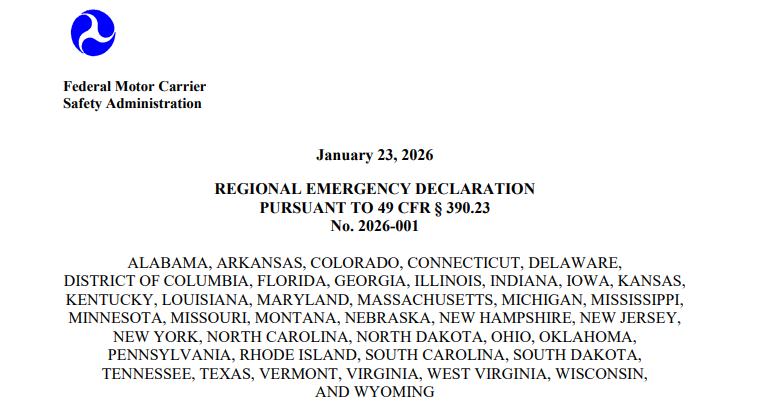 And lastly, due to Fern's aftermath, FMCSA has issued a regional emergency declaration across 40 states, suspending hours-of-service rules for drivers providing direct emergency assistance.