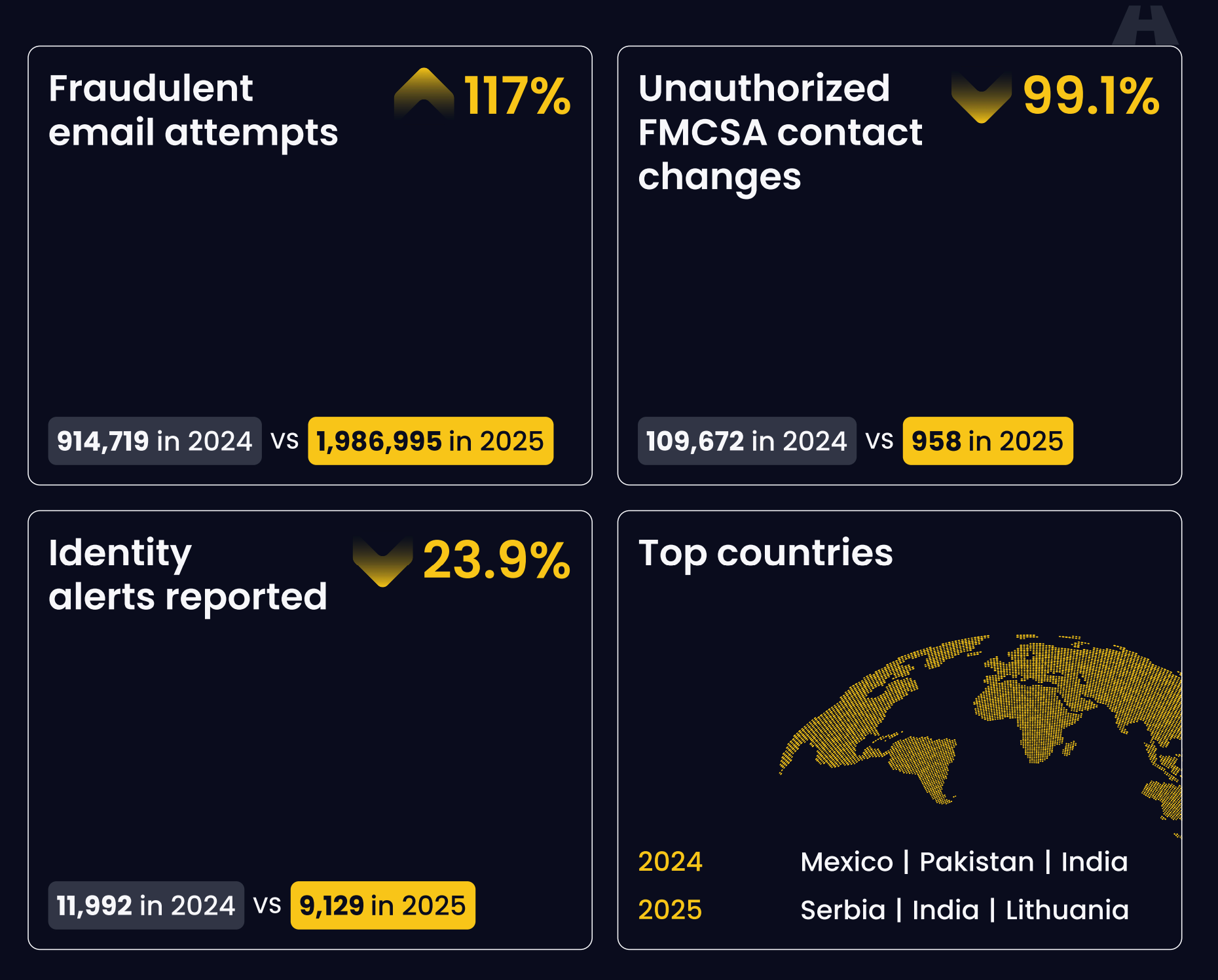 🕵️ Freight Fraud Index. Highway has released its Highway Q4 2025 Freight Fraud Index Report. Download it here to get the full breakdown on the current state of freight fraud.